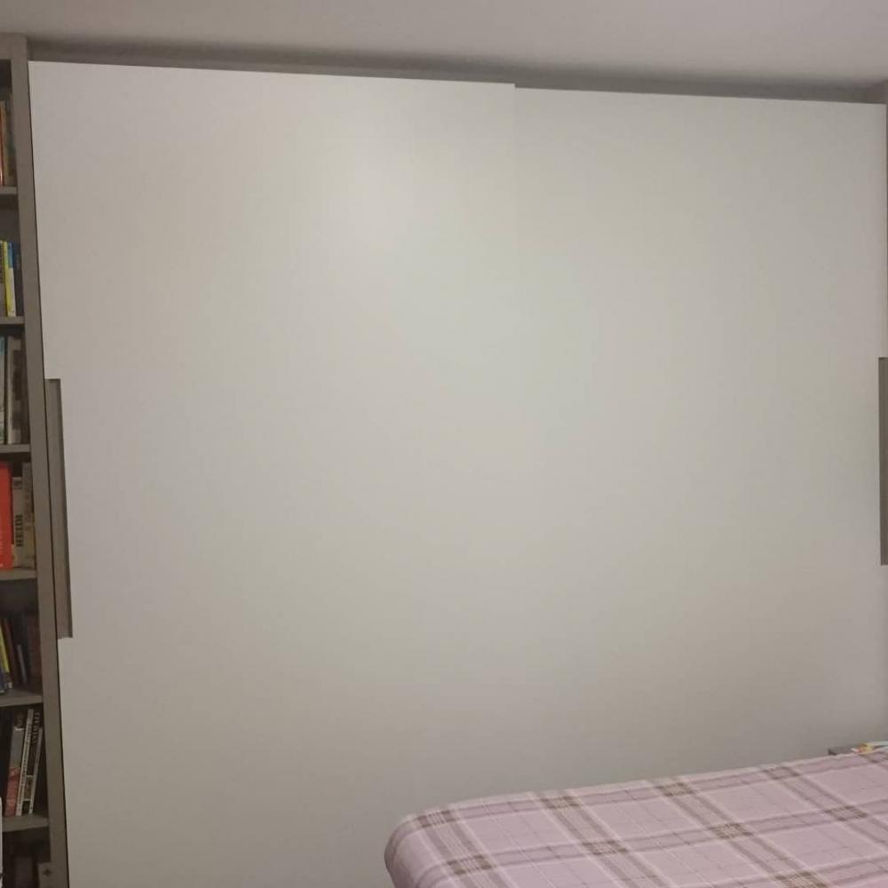 Cassettoni e ripiani interni laccati; maniglie ante in Corian Athena Gray; comodino in Corian Athena Gray e cassetto laccato